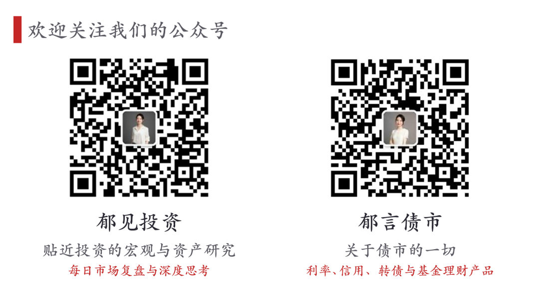 本订阅号为华西证券宏观固收团队设立及运营。本订阅号不是华西证券研究报告的发布平台。本订阅号所载的信息仅面向华西证券的专业投资机构客户,仅供在新媒体背景下研究观点的及时交流。本订阅号所载的信息均摘编自华西证券研究所已经发布的研究报告或者是对已发布报告的后续解读,若因对报告的摘编而产生歧义,应以报告发布当日的完整内容为准。